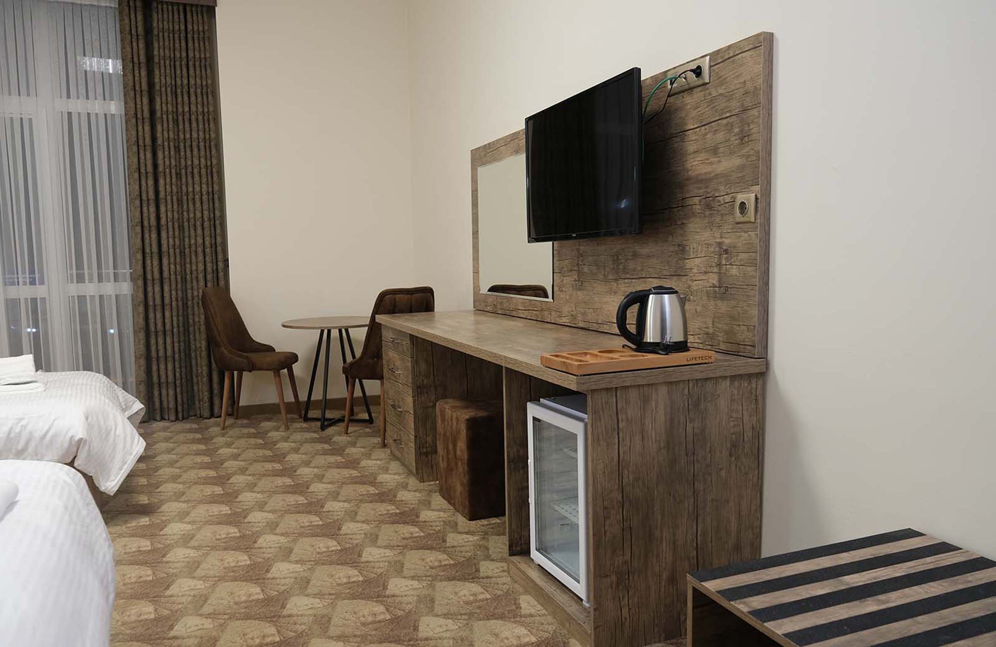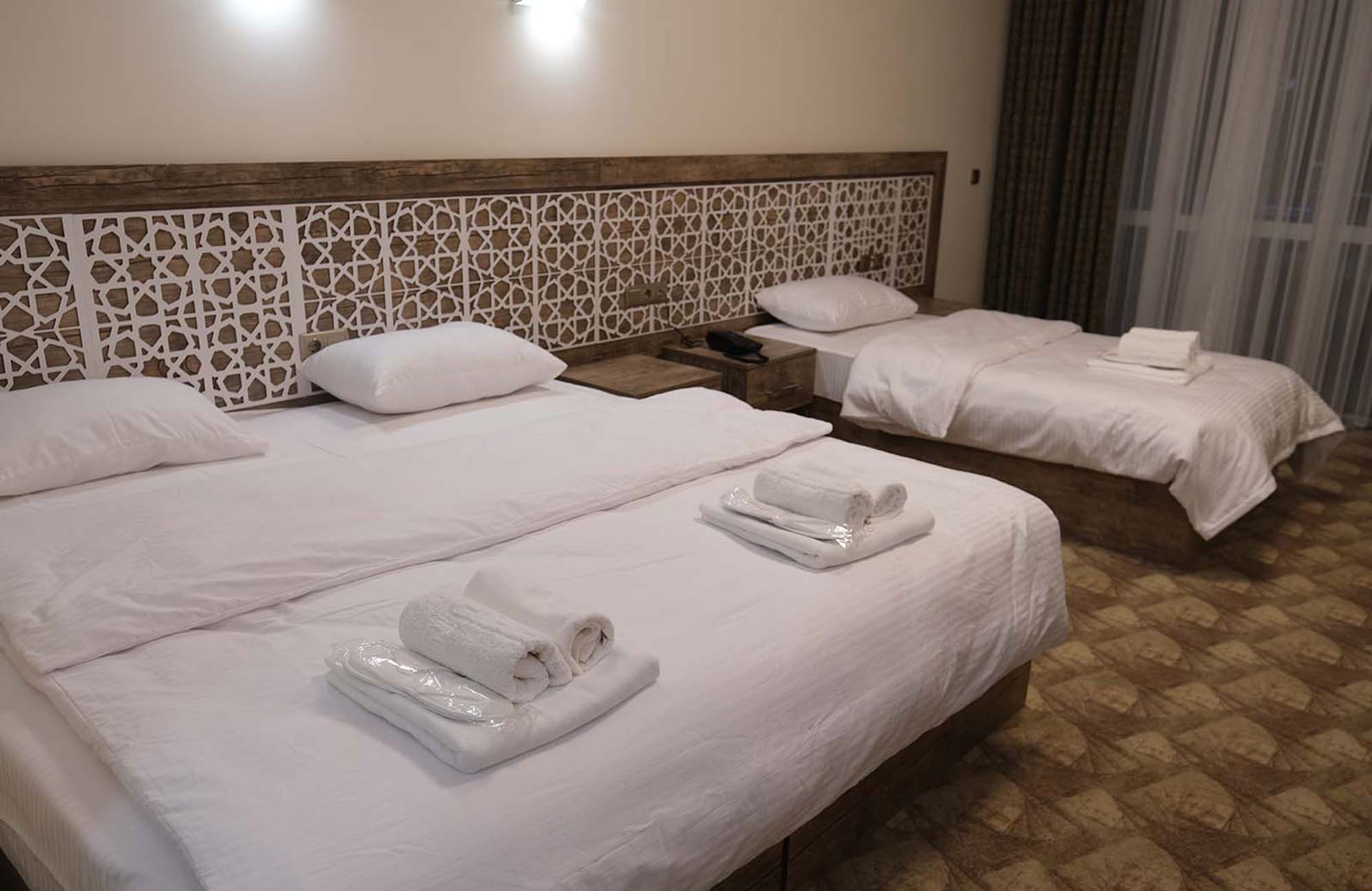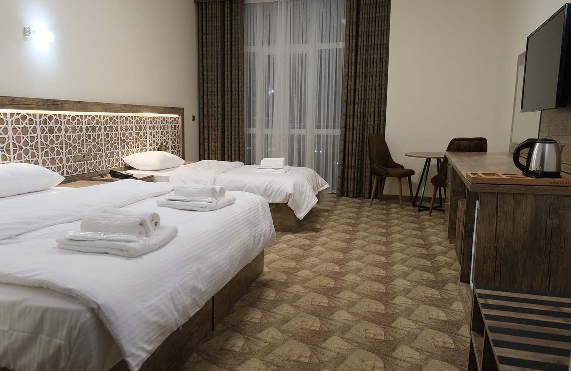 Balkonlu ve bir çift kişilik bir tek kişilik yataklı triple odalarımız geniş aileler için idealdir.